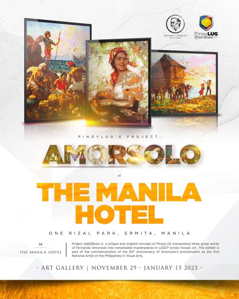 Project AMORsolo is an innovative and first-of-its-kind idea by PinoyLUG that transforms three important works by Fernando Amorsolo into extraordinary works of mosaic art using LEGO bricks. The display is a part of the celebrations marking the 50th anniversary of Amorsolo’s designation as the first visual artist national of the Philippines. The Manila Hotel Arty Gallery will host an exhibition of Project AMORsolo from November 29, 2022, until January 15, 2023.